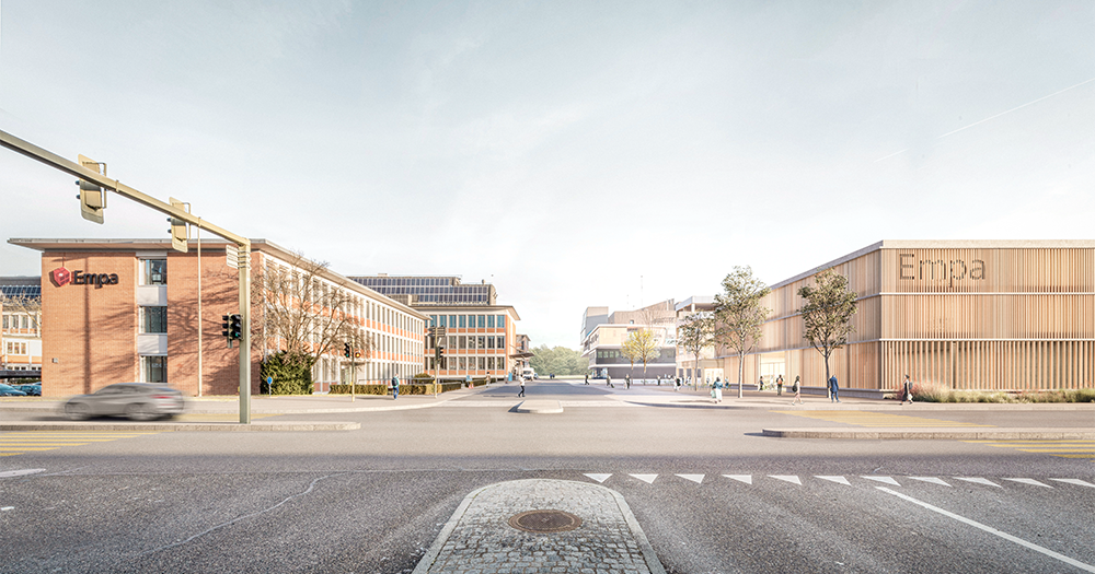 Das Laborgebäude besteht aus 23 neuen Laborräumen und 29 Büros in einem kompakten Bau mit hohen baudynamischen Anforderungen, sowie Multifunktionsflächen im Erdgeschoss. Im Multifunktionsgebäude stehen 1'000 m² Bürofläche im Edelrohbau zur Verfügung. Im Erdgeschoss befindet sich unter anderem eine Gastro-Fläche mit einer zum Campus-Platz gewandten Loggia. Das Volumen des Laborgebäudes beträgt knapp 40'000 m3, von Büro- und Parkhaus knapp 53'000 m3. Das Parkhaus mit über 260 Parkplätzen bietet Platz für die Empa-Flotte mit E-Tankstelle, Garage und Waschanlage und enthält eine Vorhaltefläche für künftige, mögliche Drittnutzungen wie Verkauf als Areal-Laden zur Campus- und Quartier-Benutzung. Für die Neubauten auf dem Empa-Campus wird eine Minergie-P-Eco Zertifizierung realisiert und die Tragstruktur des Parkhauses wird in einer innovativen Hybrid-Bauweise erstellt. Das gesamte Projekt wird mit BIM geplant und die Ausführung erfolgt nach den Methoden von Lean Construction