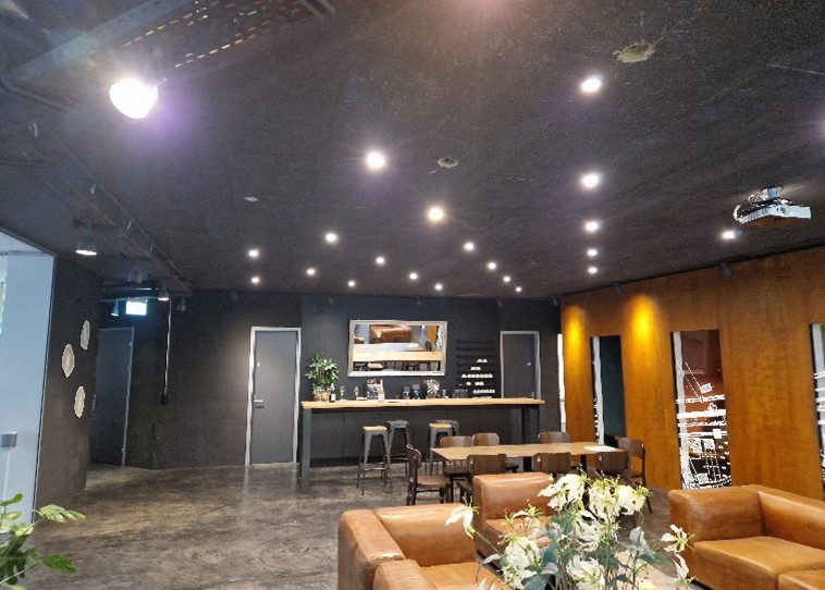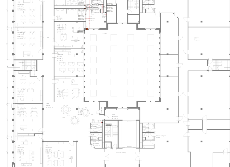 Durch die neuen Raumeinteilungen im 1. Und 4.Obergeschoss sind einige Heizkörper zu ersetzen. Diese werden demontiert und durch neue Heizwände inkl. Ventile mit Thermostatantrieb (nicht elektrisch) ausgerüstet. Die neuen Büroräume und die Cafeteria werden nun mit hygienischer Frischluft von einer Klimaanlage versorgt. Die Klimaanlage wird über die neue Wärmepumpe mit Heizung und Kälte versorgt, dadurch kann ein angenehmes Raumklima sichergestellt werden. Die Wärme bzw. Kälte aus den Räumen wird mittels Kreislaufverbund-Wärmerückgewinnung so weit wie möglich zurückgewonnen. In der Cafeteria erfolgt die Zuluft über Weitwurfdüsen im Aufenthaltsbereich. Die Abluft wird zentral im Küchenbereich gefasst. Das Warmwasser wird wie bei den vorhandenen Nasszellen über ein Elektro-Warmwassererwärmer erzeugt (Unterstellboiler).